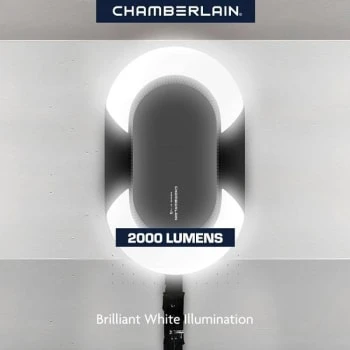- Advanced Corner to Cornerâ„¢ LED Lighting: Uniformly brightens every corner in the garage, for reliable, long-lasting light when you need it. 2,000 lumens, energy efficient, lasts 10X longer than a standard light bulb and never change a light bulb again!