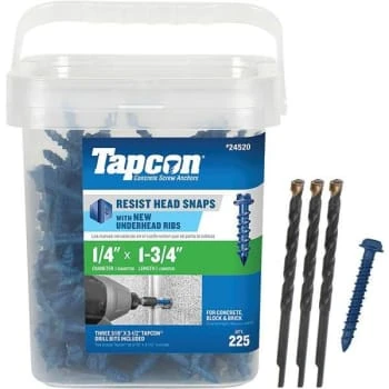 - Tapcon 1/4 ” x 1-3/4 ” Hex-Washer-Head Concrete Anchors